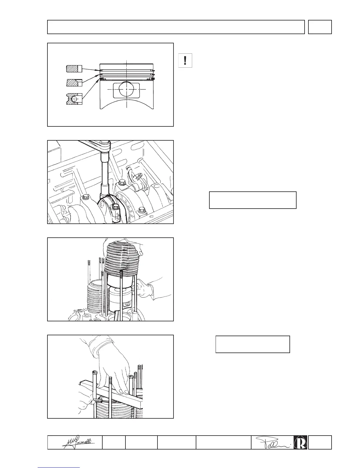 Fit the piston rings onto the pistons (fig.73) in the following order: