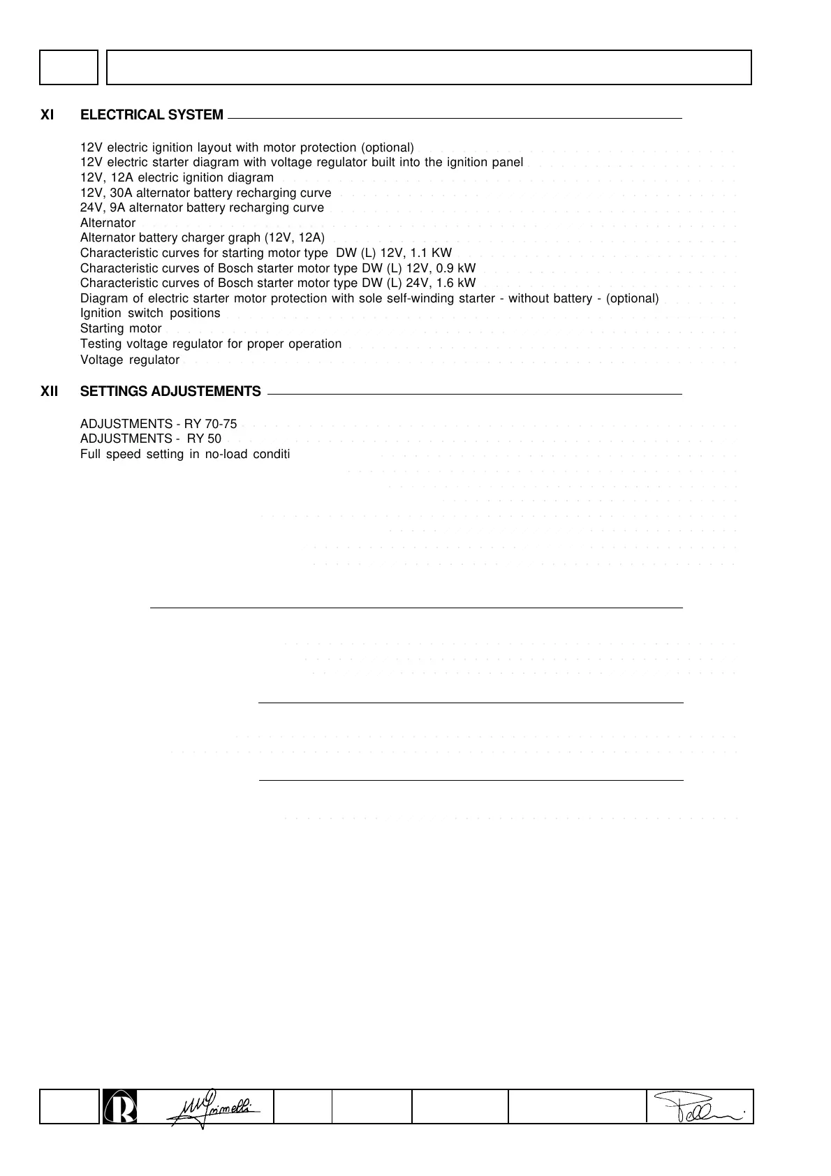 XII SETTINGS ADJUSTEMENTS
