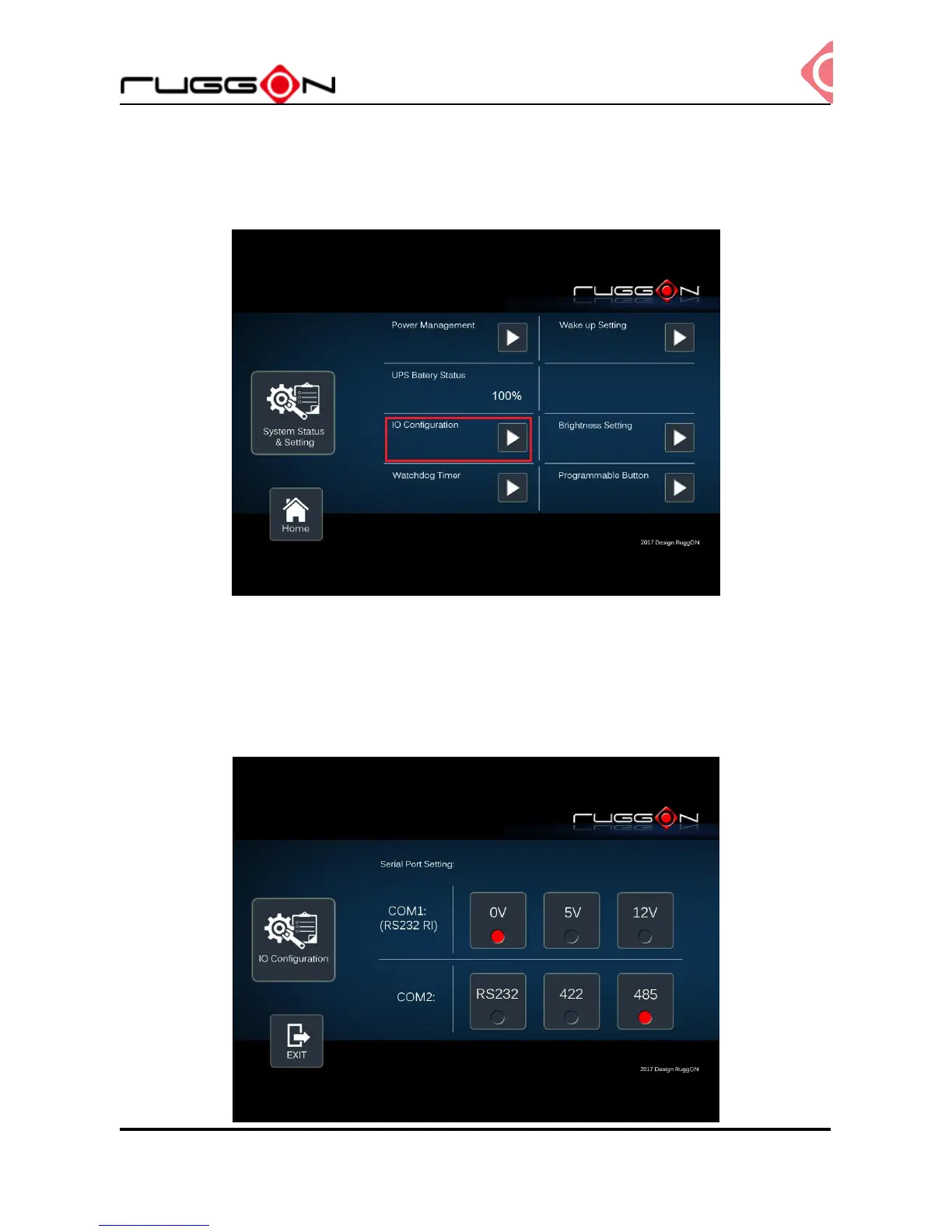RuggON VX-601 - I;O Configuration; COM1 Setting