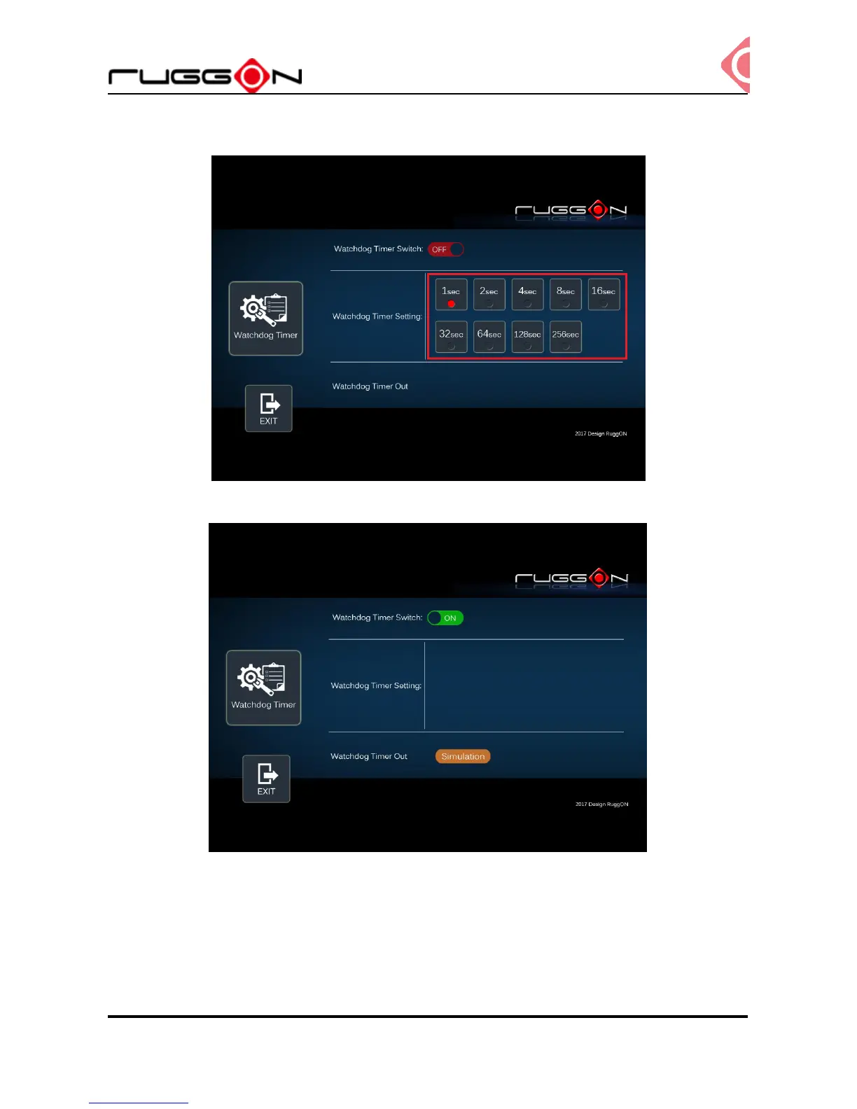 If you like to test if watchdog timer is enabled and worked, please click the “simulation” icon.