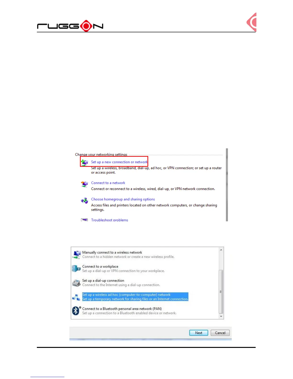 4. Select “Set up a wireless ad hoc (computer-to-computer) network and click “Next”