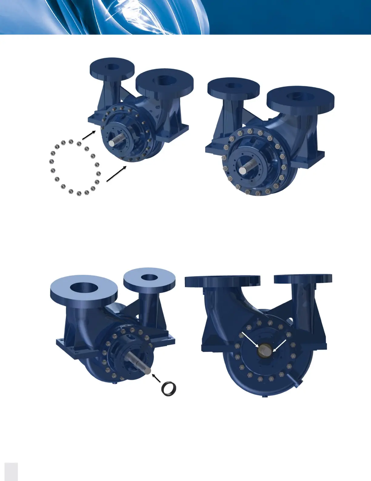 17. Place and tighten the hex nuts on the studs to secure the axial casing cover to the case.