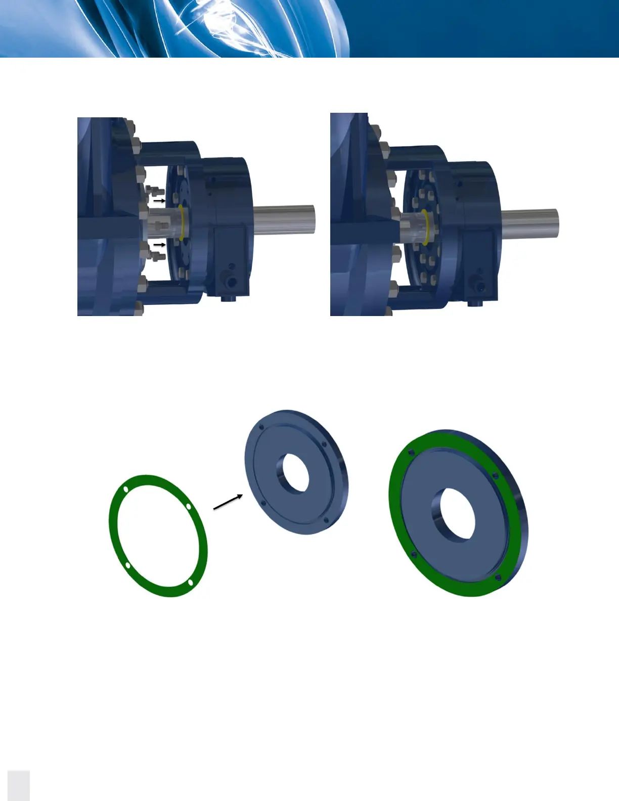 34. Place the corresponding gasket on the external radial bearing housing cover.