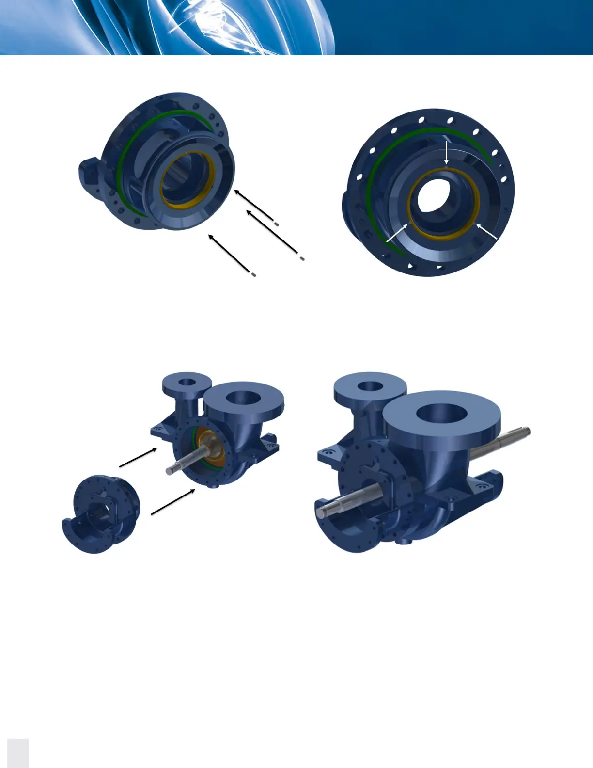 17. Insert socket set screws to fix the non-coupling side (axial) case wear ring to the casing cover.