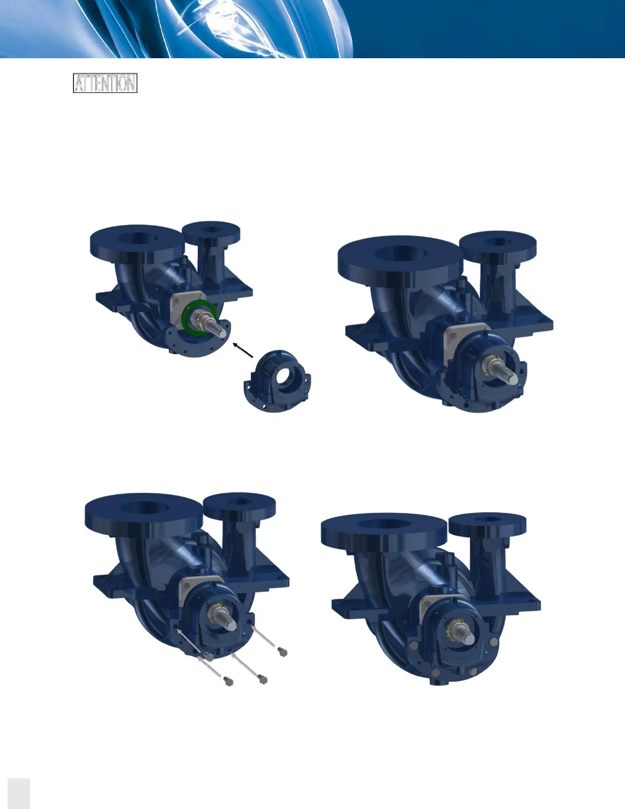 37. Manually place and tighten the hex bolts to secure the radial bearing housing to the case.