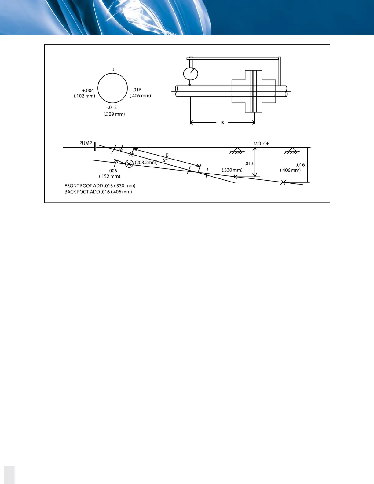 In this example, the motor should be shimmed up 0.013 inch (0.330 mm) under front feet and