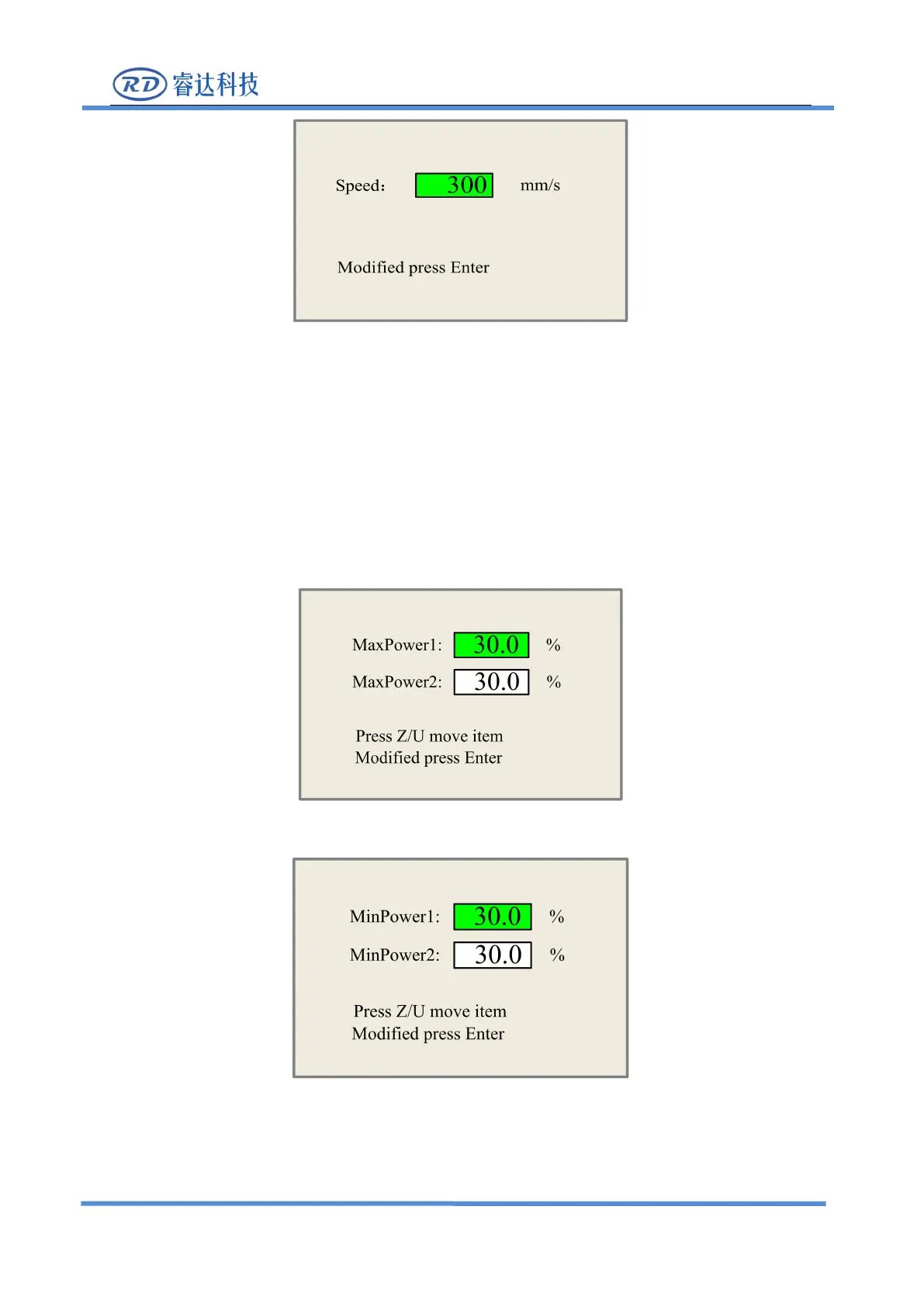 Push the “Max Power” or the “Min Power” keys when the screen is on the main interface, it will