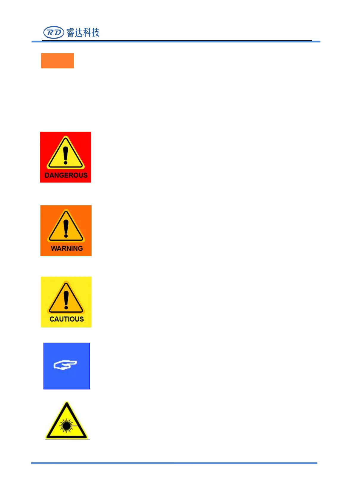 Some signs or text will be used to remind you to pay attention to the dangerous matters and