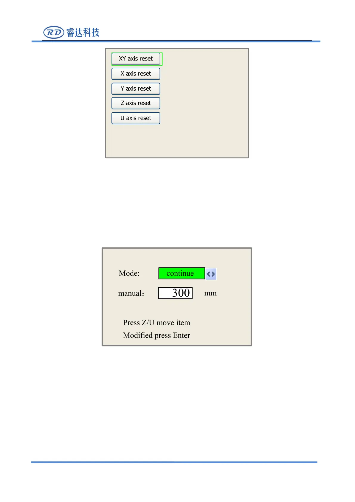 When the Mode item is “manual”, then pushing the direction key one time, the corresponding axes will