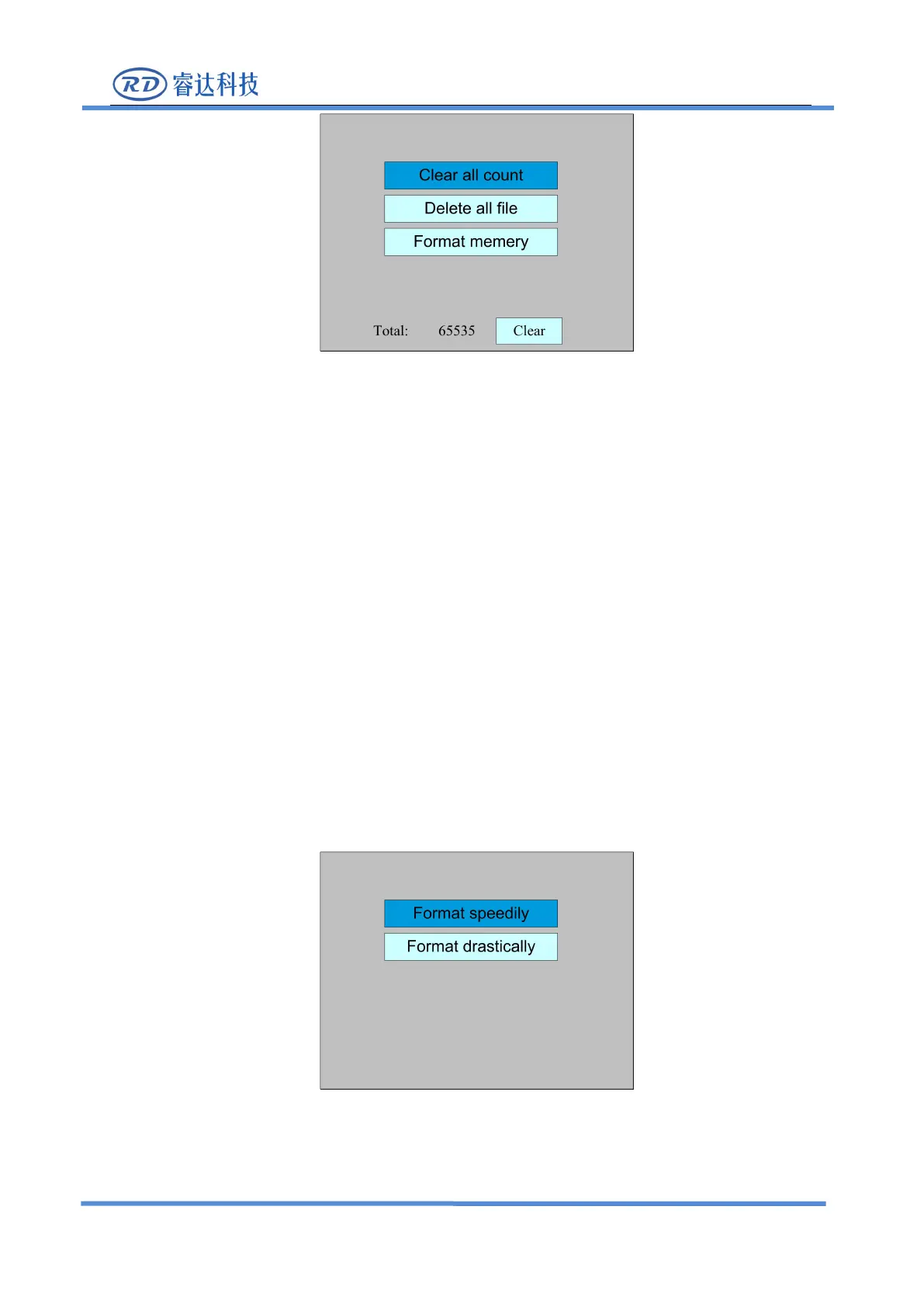 Delete all file: To delete all memory files