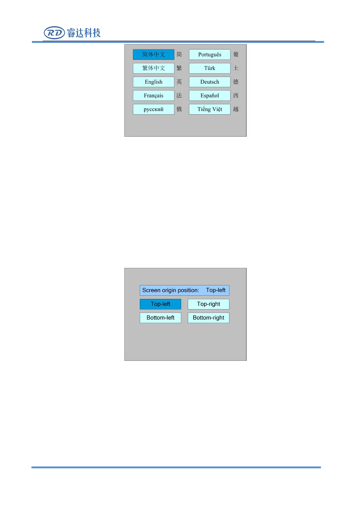 The display screen's origin position is set here, and different screen origin positions are selected