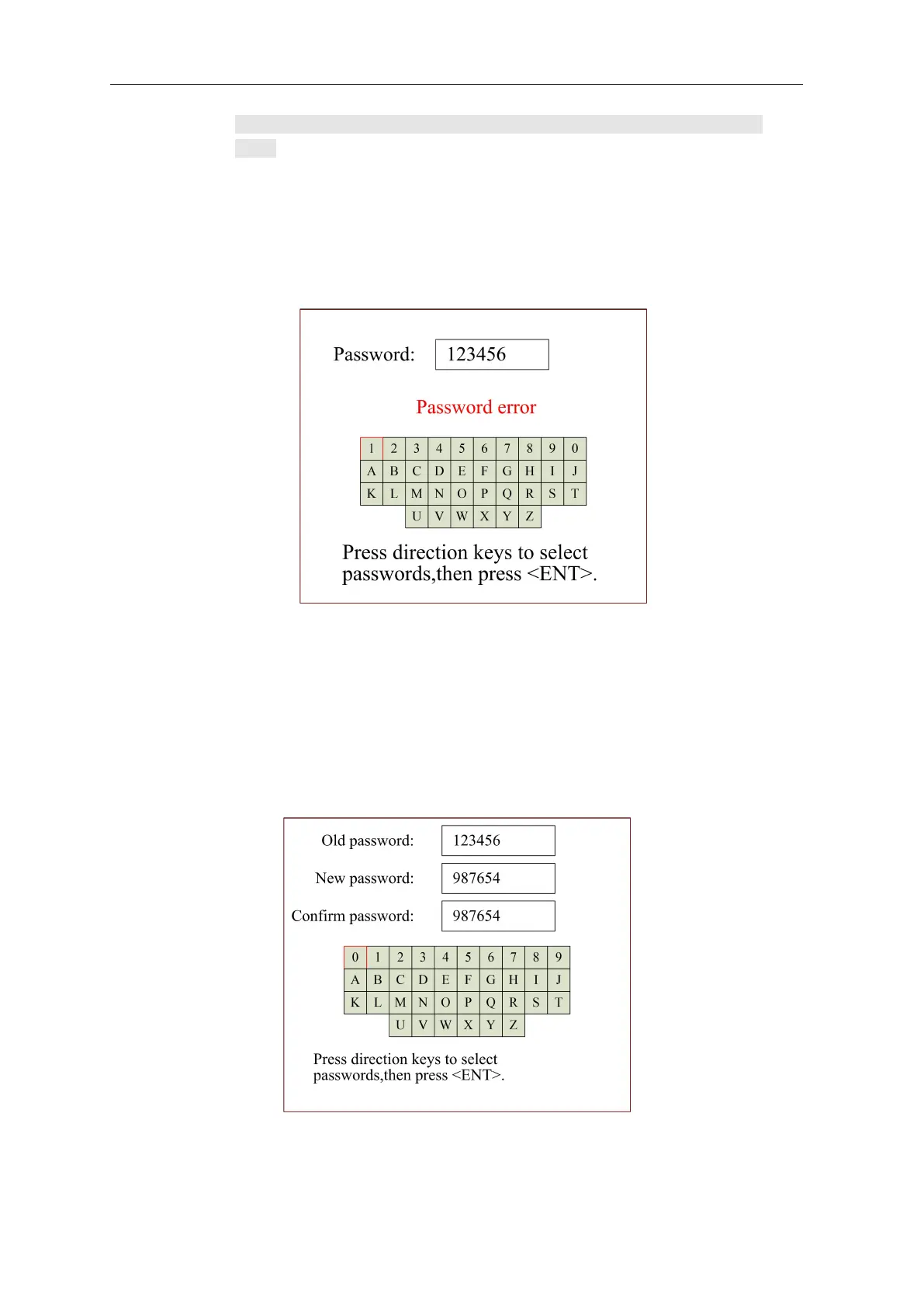 select letters and press ok to confirm it. When user enter a full six-digit password, press [OK], if