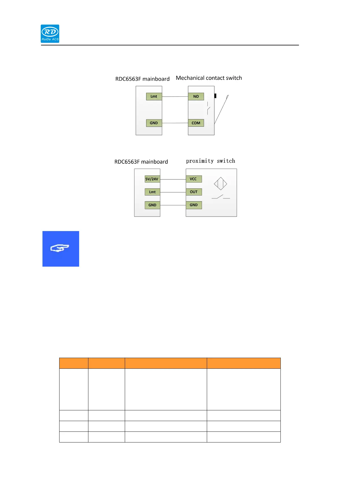 The typical connection of the mechanical contact switch is shown in the figure below: