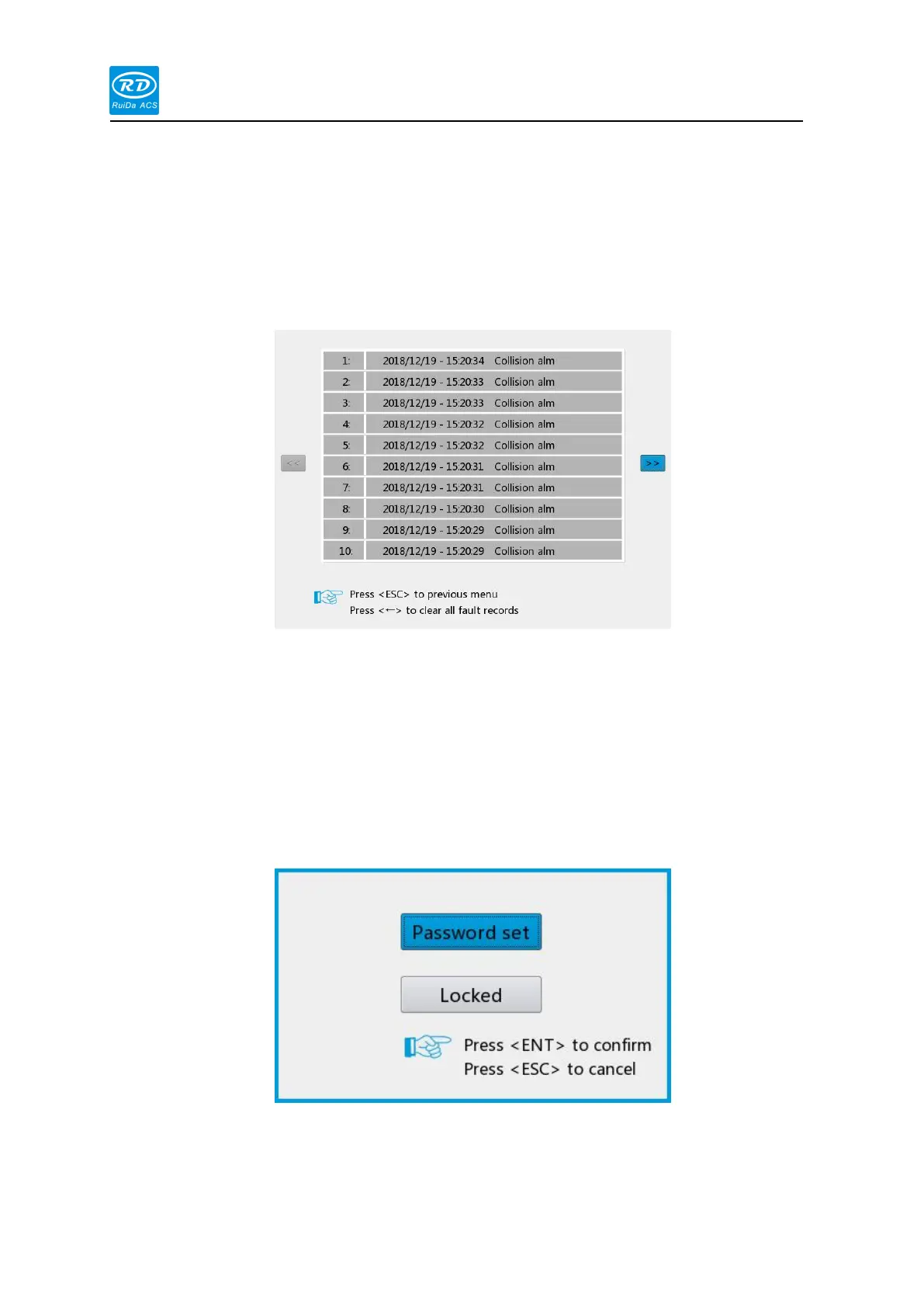 user can troubleshoot the fault and save up 20 alarm information. Press the [←] button on the