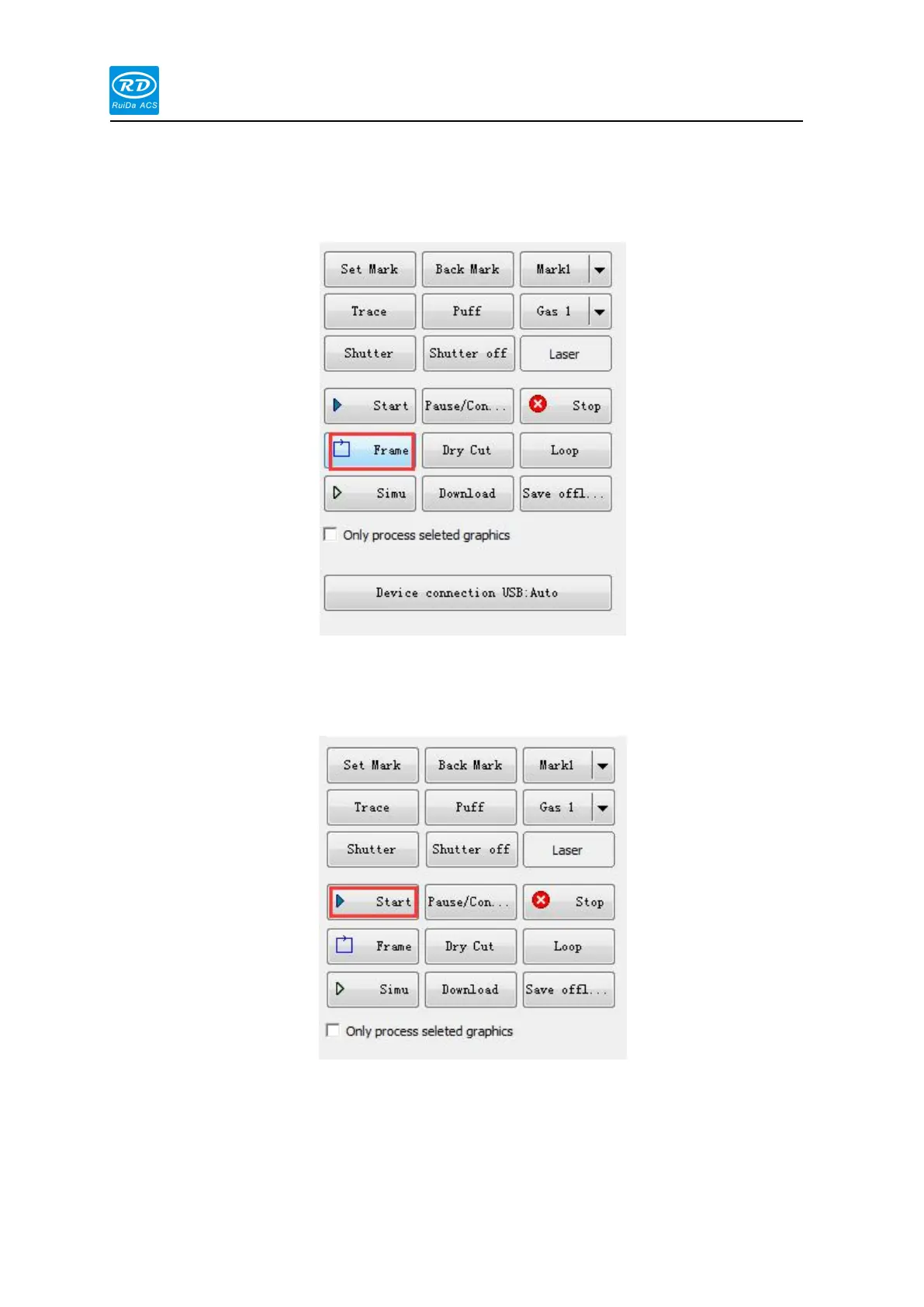 On the right side of the software interface, press the [frame] button, the cutting head will