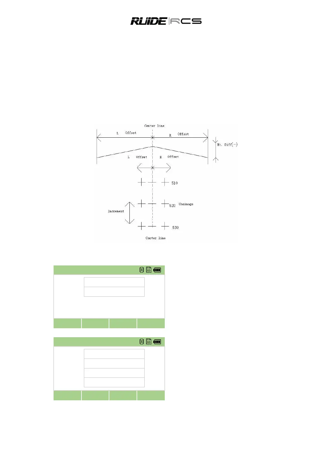 Vertical Difference Left (right): vertical difference between left (right) chainage and the central line point.