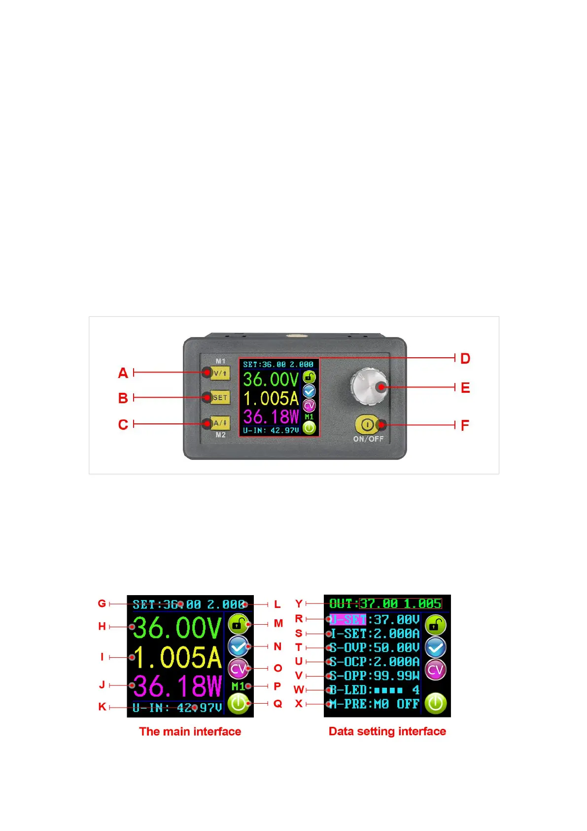 A: Voltage setting/Up Arrow/Shortcut to recall M1 Data Group.