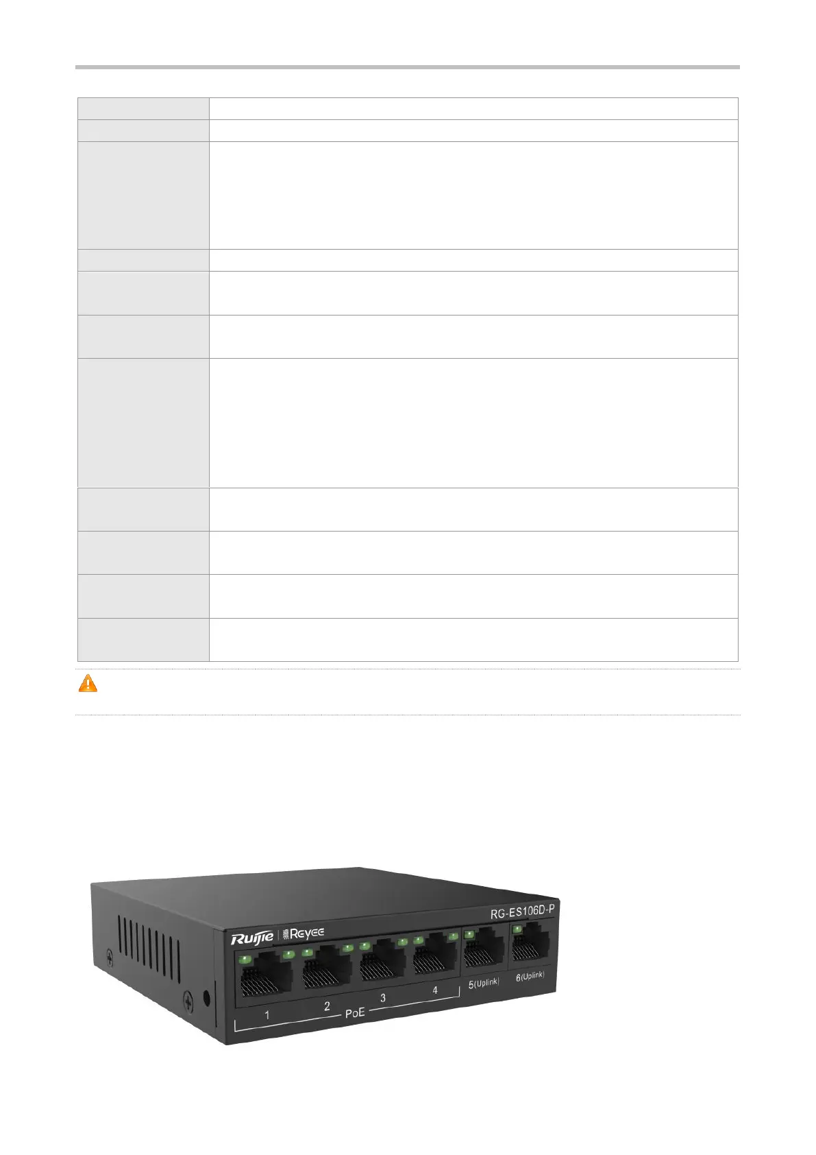 RG-ES106D-P provides 6 10/100Base-TX auto-sensing Ethernet ports on the front panel, and a port mode switch-over