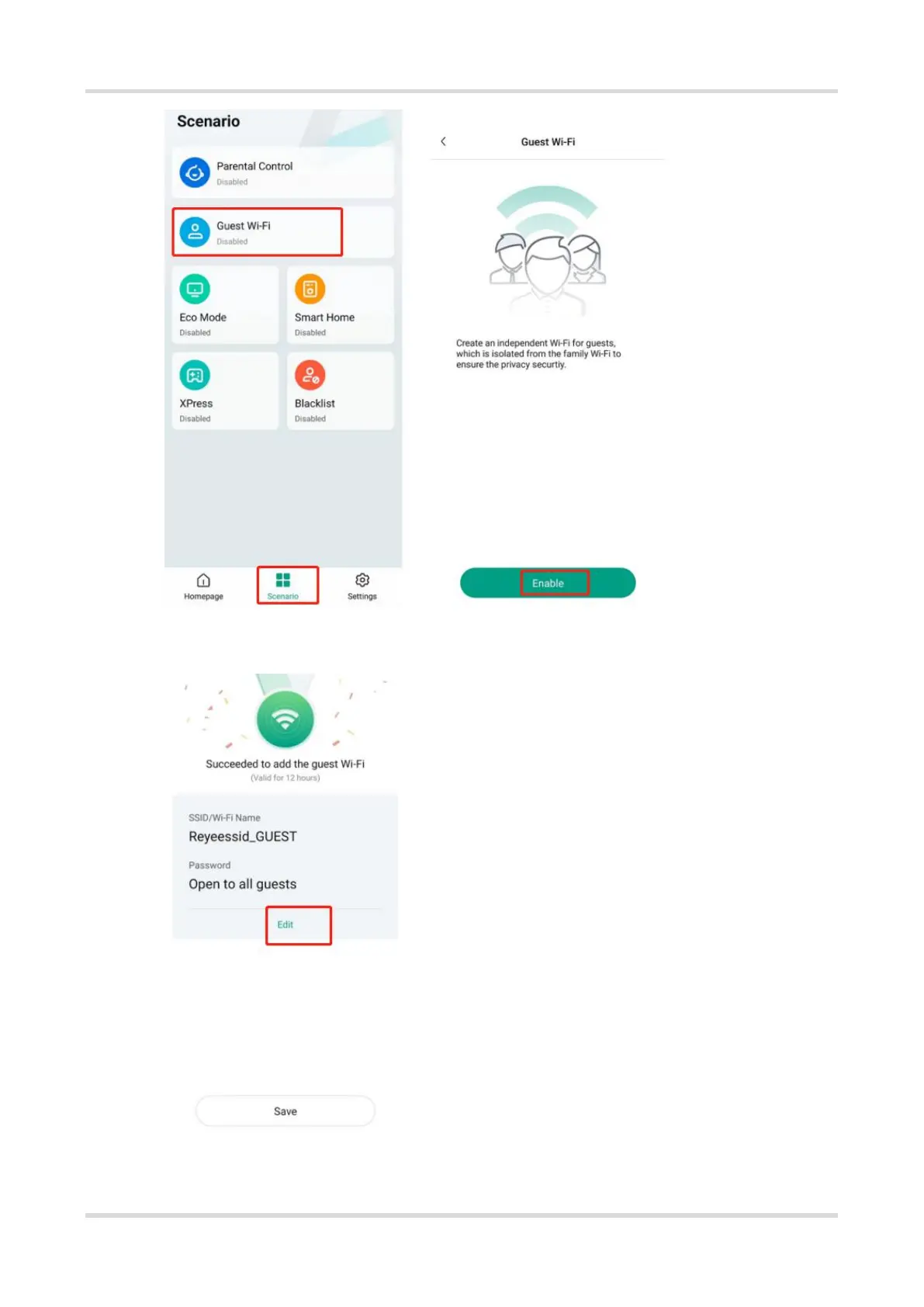 (2) After you create the guest Wi-Fi, its SSID is displayed. It is open to all guests by default. You can also tap