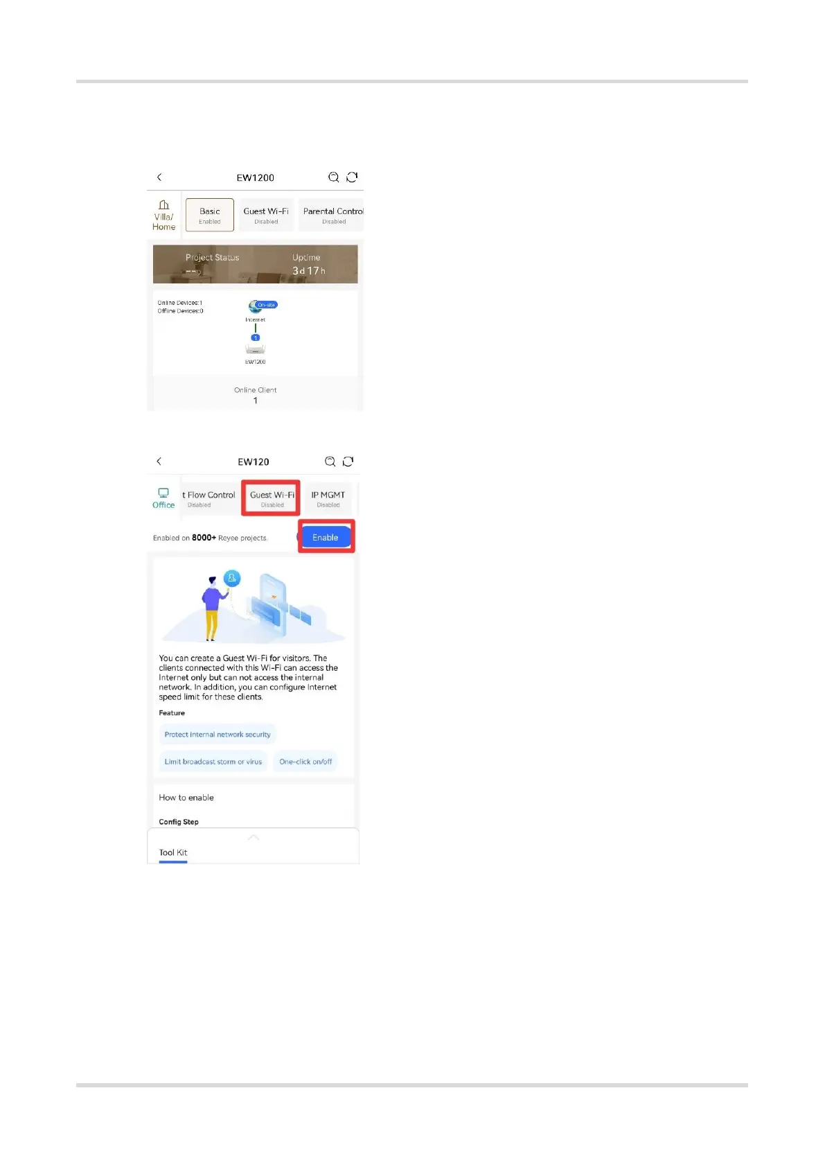 (2) Find out Guest Wi-Fi in the basic scenario feature list, and tap Enable.
