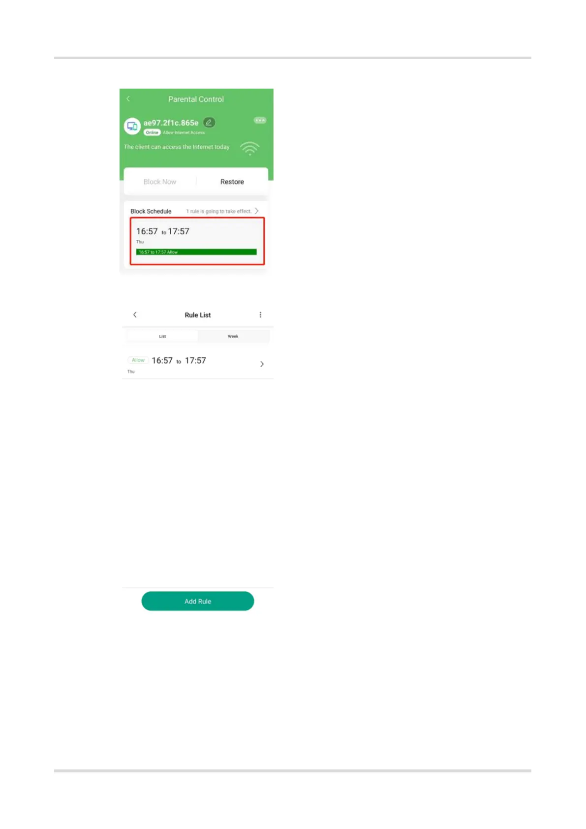 b Tap a rule to enter its page. Click Add Rule to add a rule.