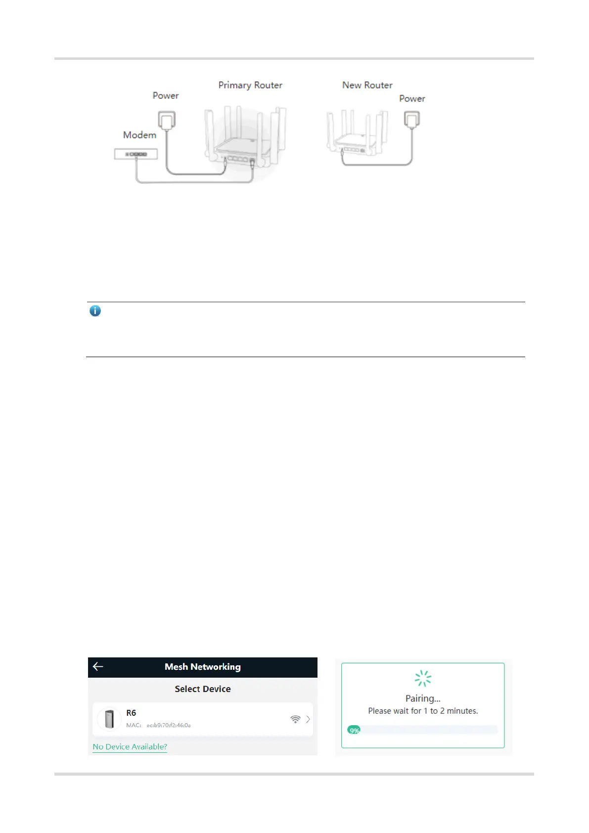 1. For quick pairing, please place the new router about 2 meters away from the primary router and connect the