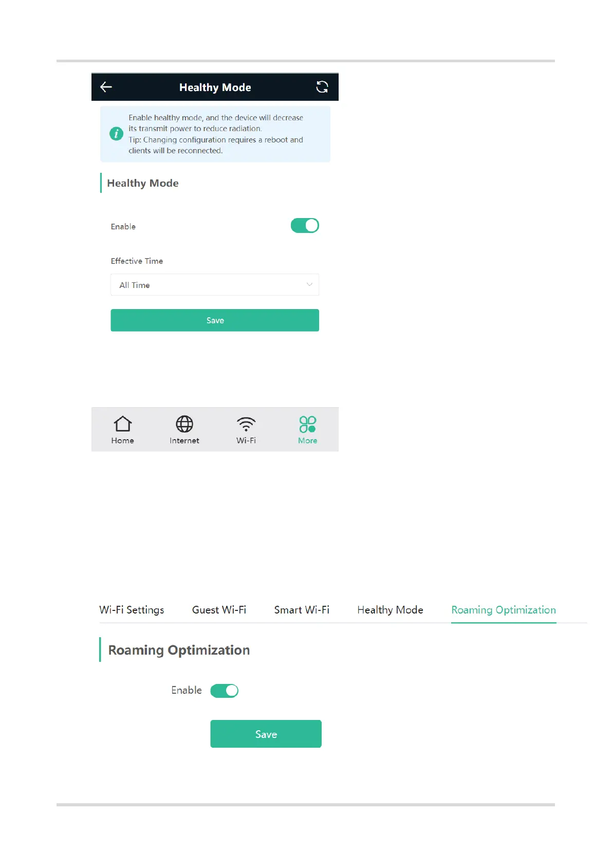 Click Enable to enable Roaming Optimization. Terminal devices can connect to the new router to maintain their