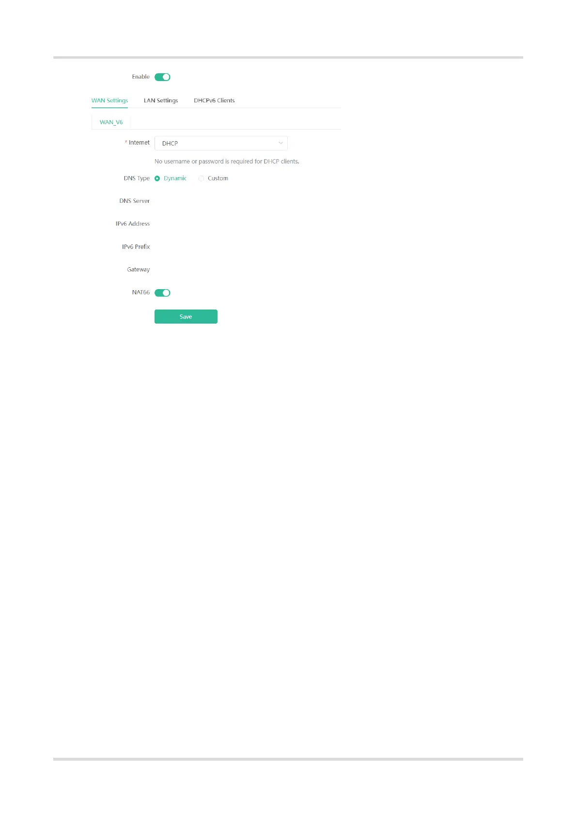 IPv6 Address/Prefix Length: If the router fails to obtain an IPv6 prefix, you can configure one manually. Set
