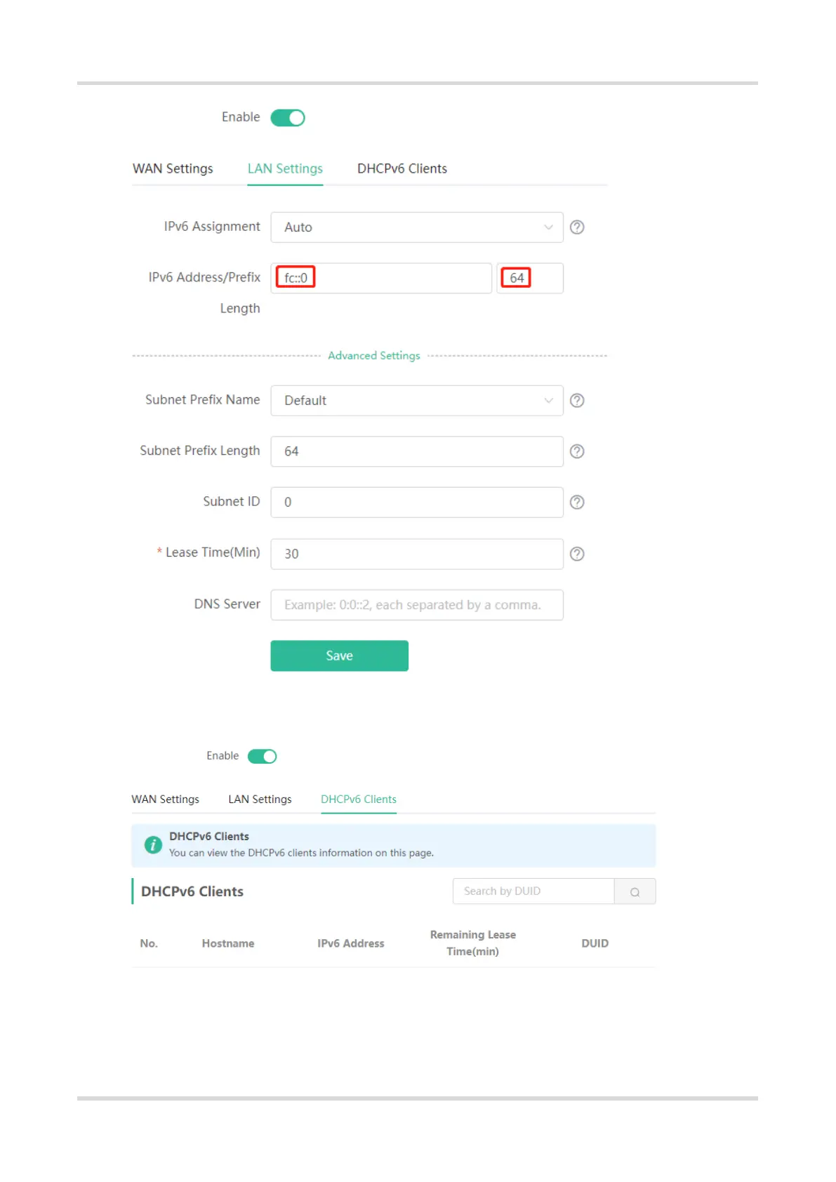 Click DHCPv6 Clients to view the list of clients that have obtained IPv6 addresses from the router.