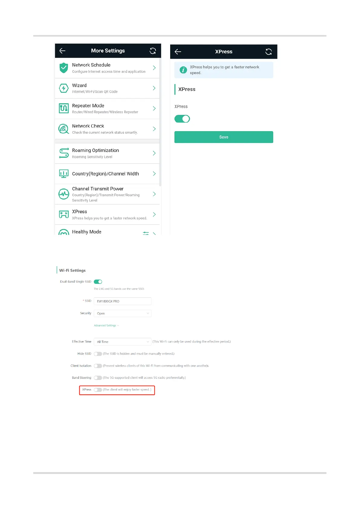 In the PC view, turn on XPress as follows.