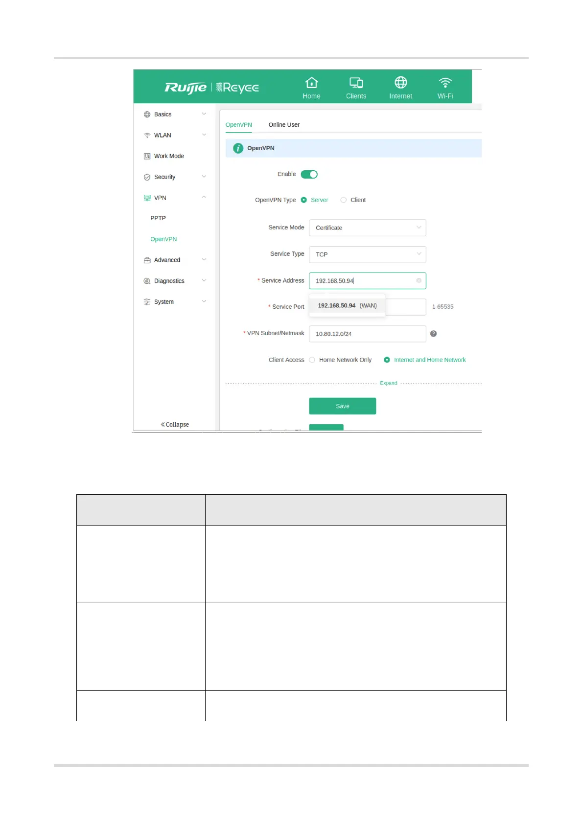(3) The following table describes the OpenVPN server configuration.