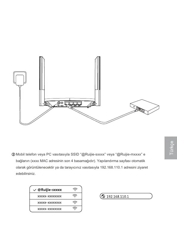Mobil telefon veya PC vasıtasıyla SSID “@Ruijie-sxxxx” veya “@Ruijie-mxxxx” e
