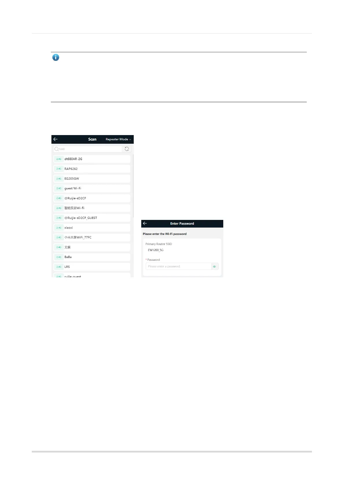 of the primary router, and enter the Wi-Fi password of the primary router to connect to the Wi-Fi.
