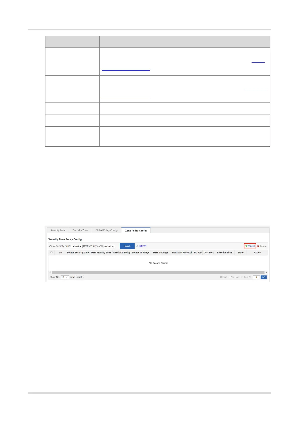 (1) Choose Firewall > Security Zone Config > Zone Policy Config.