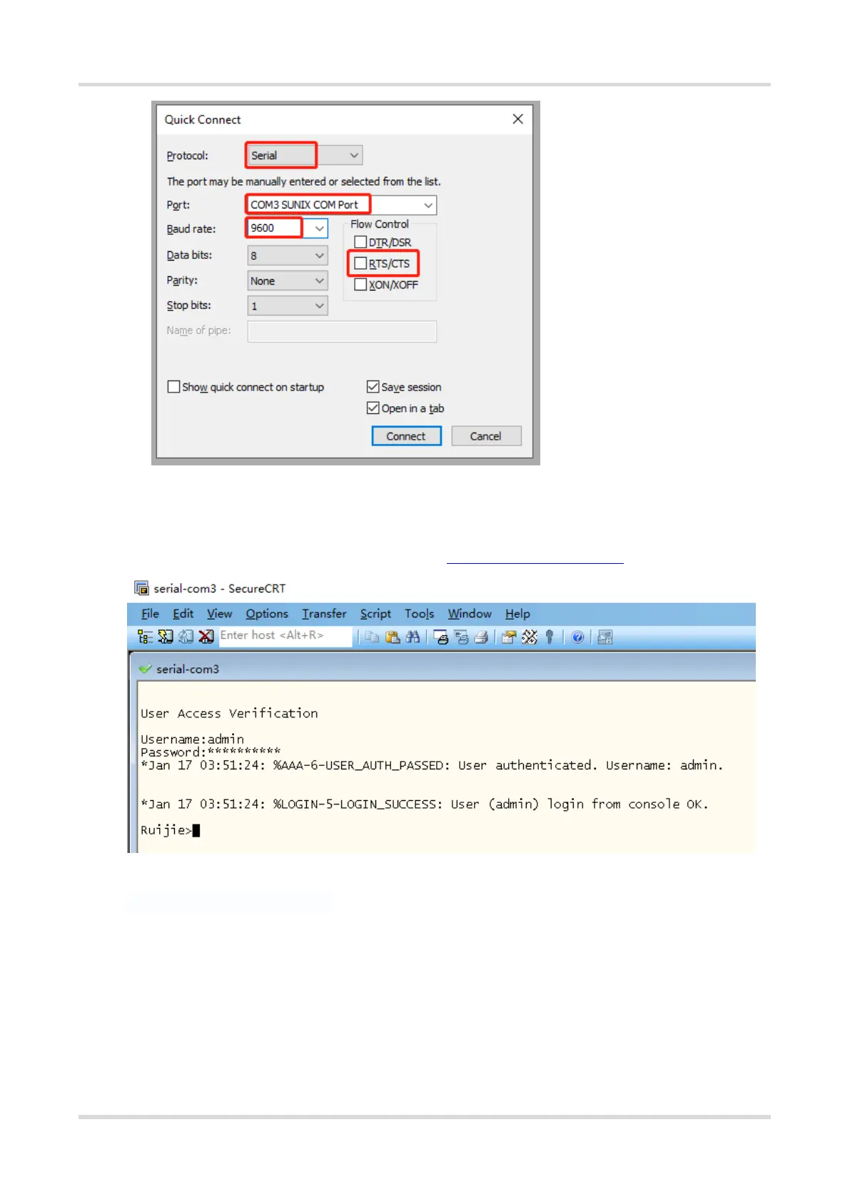 (4) Enter the device CLI page. Press Enter and enter the user name and password (admin/admin by default)