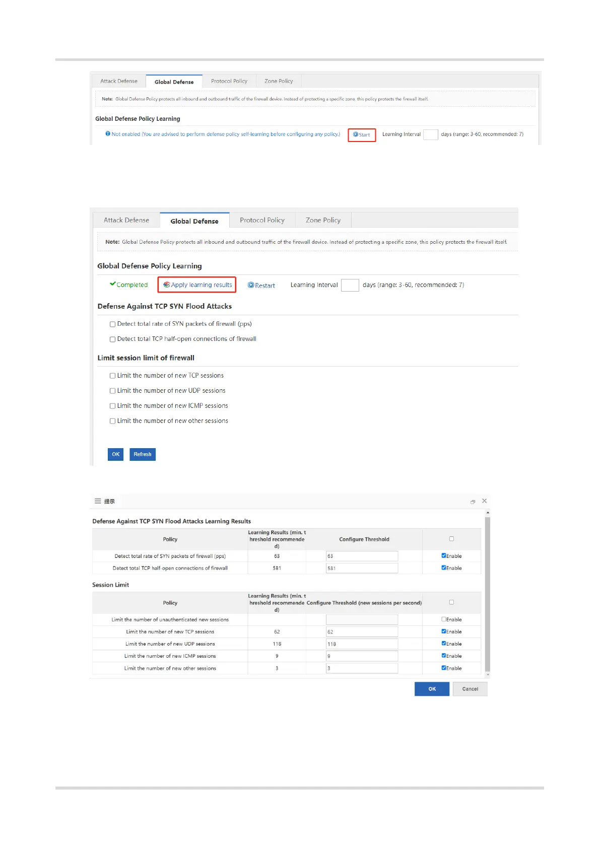 (3) After global defense policy learning is completed, click Apply learning results. Adjust the threshold based