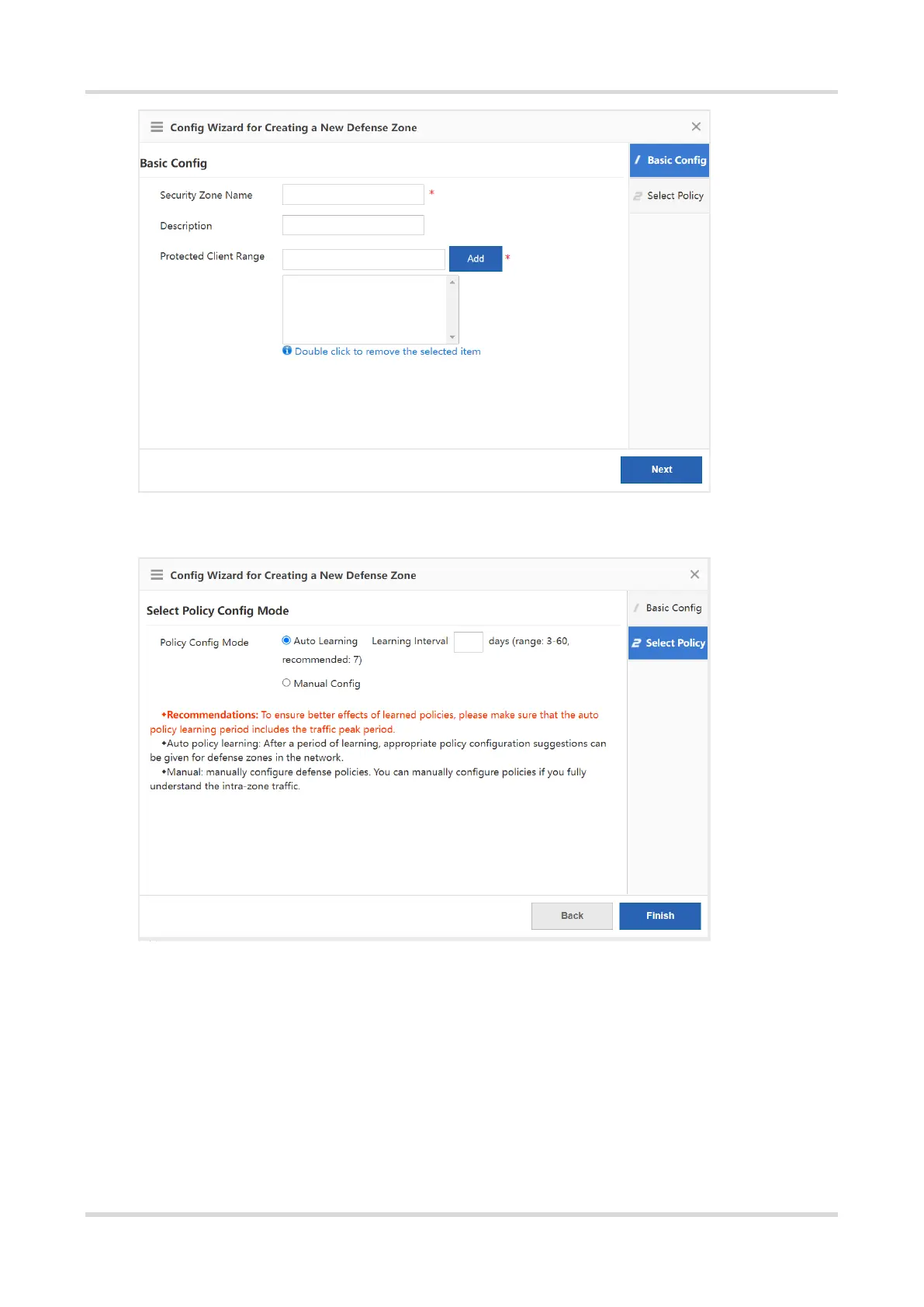 (5) If you select Auto Learning for the policy configuration mode, follow the procedure to configure the policy. If