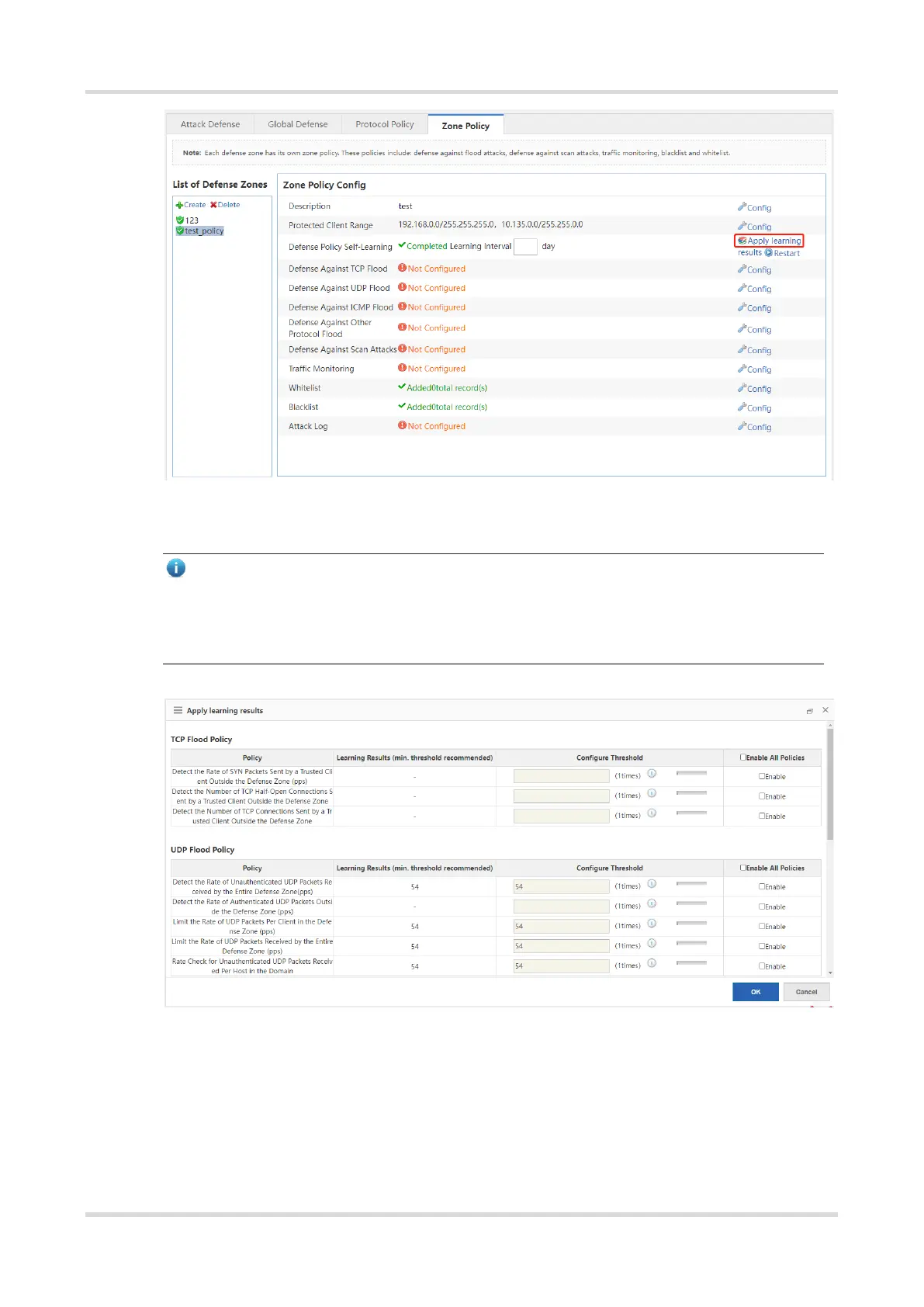 traffic monitoring function after the defense zone policy works smoothly to ensure that the device can