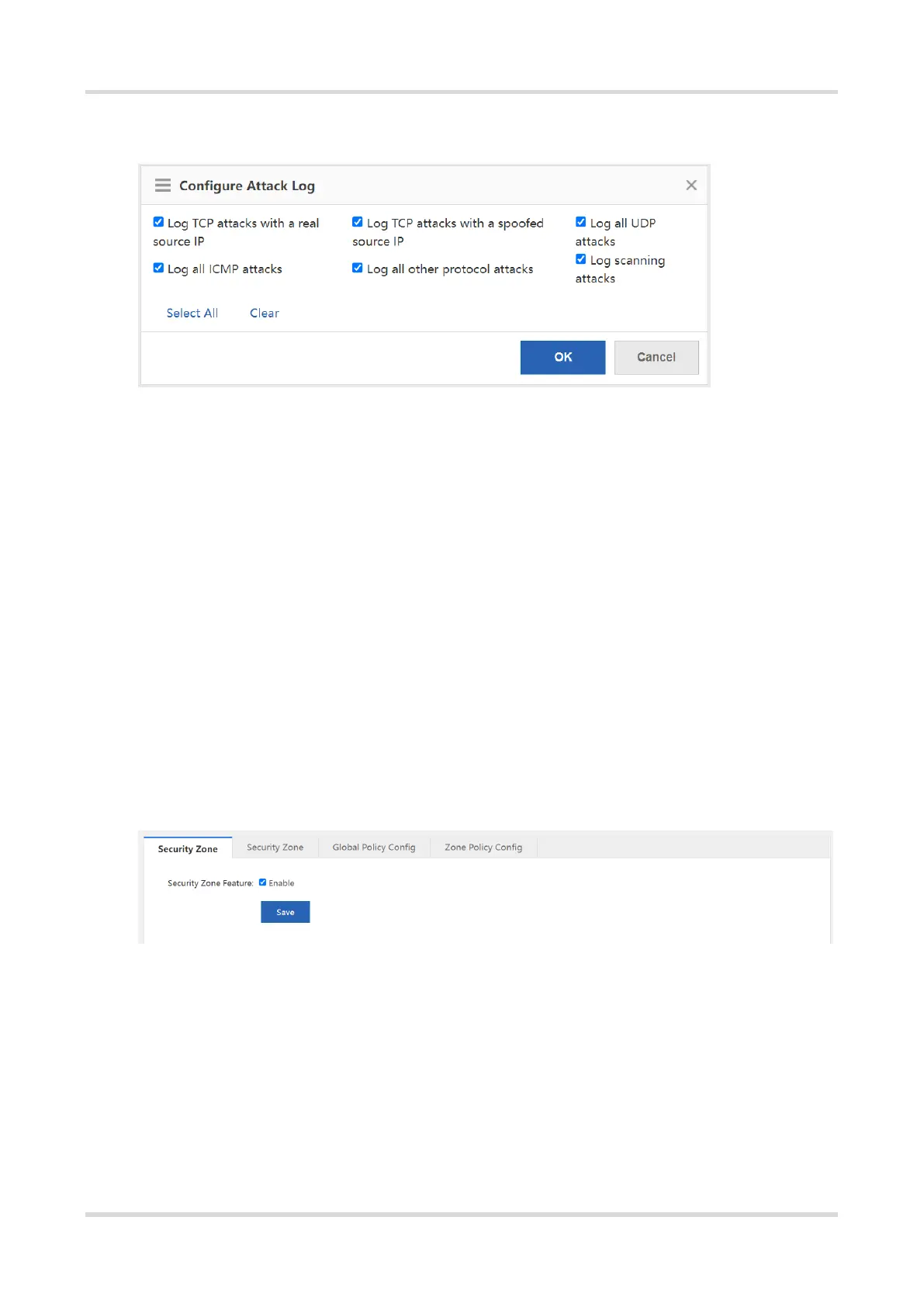 (1) Choose Firewall > Security Zone Config > Security Zone Feature.