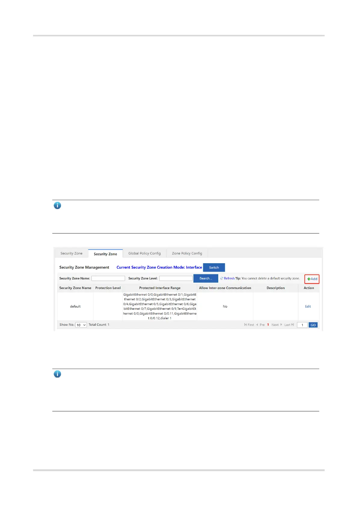 (2) Click Add to access the Create Interface-based Security Zone page.