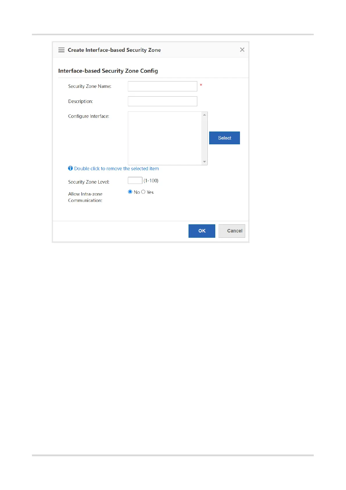 (1) Choose Firewall > Security Zone Config > Security Zone.