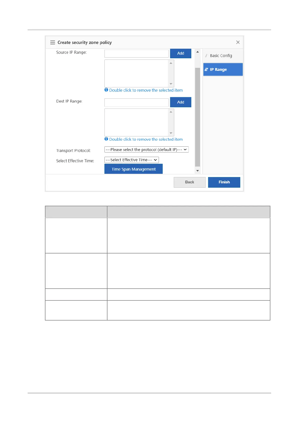 (5) Configure the ACL policy according to the following information and click Finish. If you select IP Range for