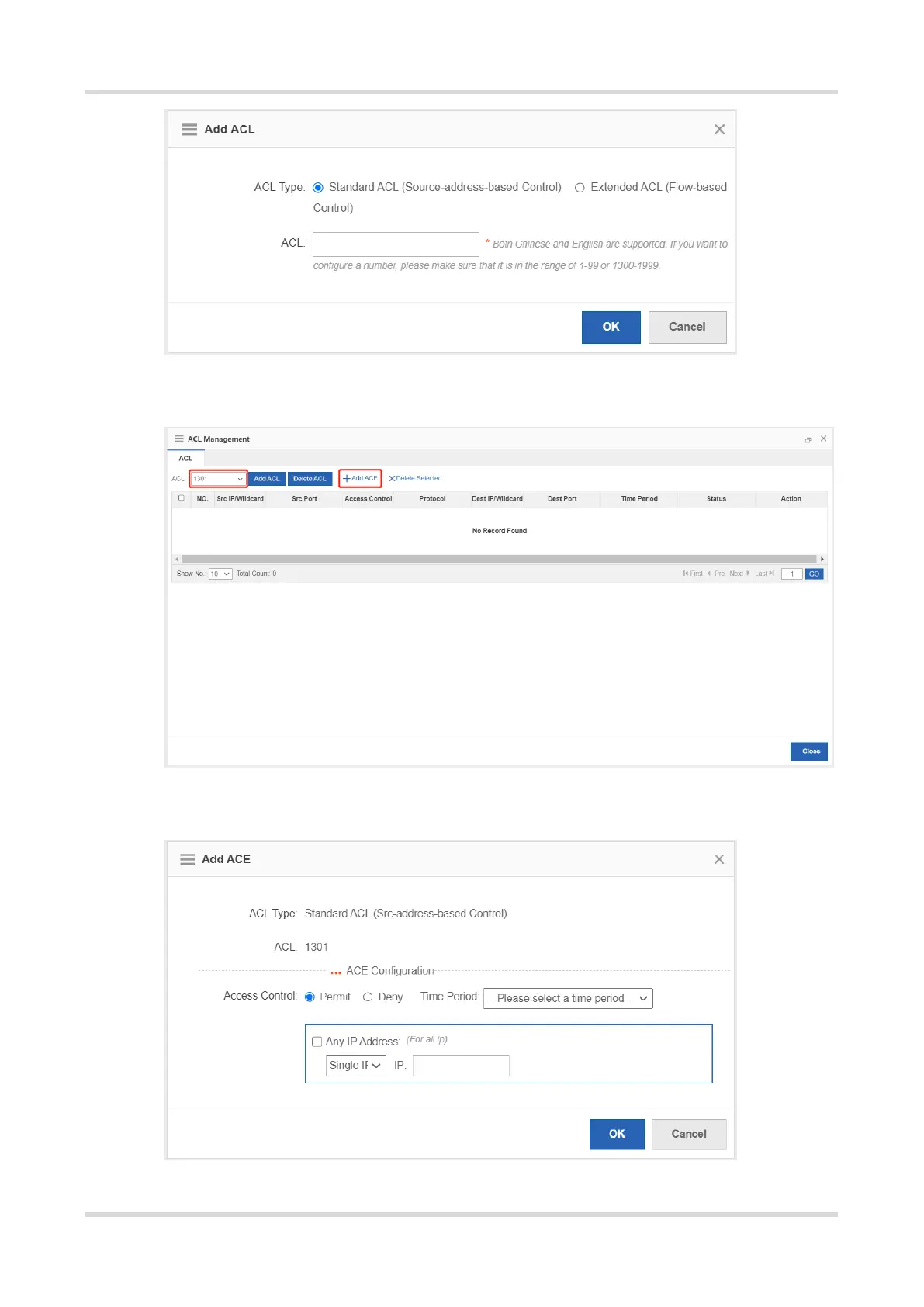 d Select the created ACL and click Add ACE to access the Add ACE page.