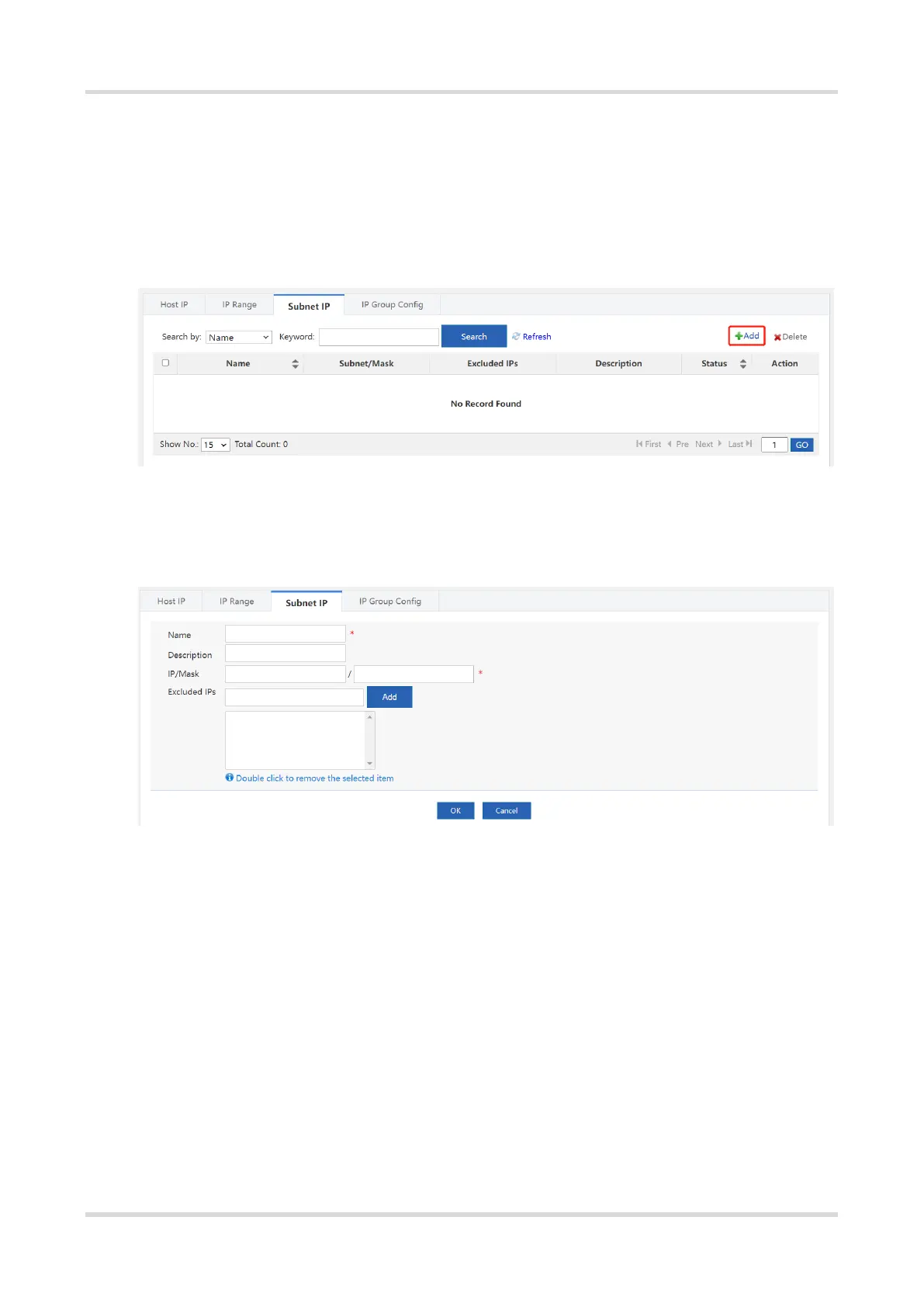 (3) Enter the name, description, the IP address or the mask. If there is an excluded IP address, enter the
