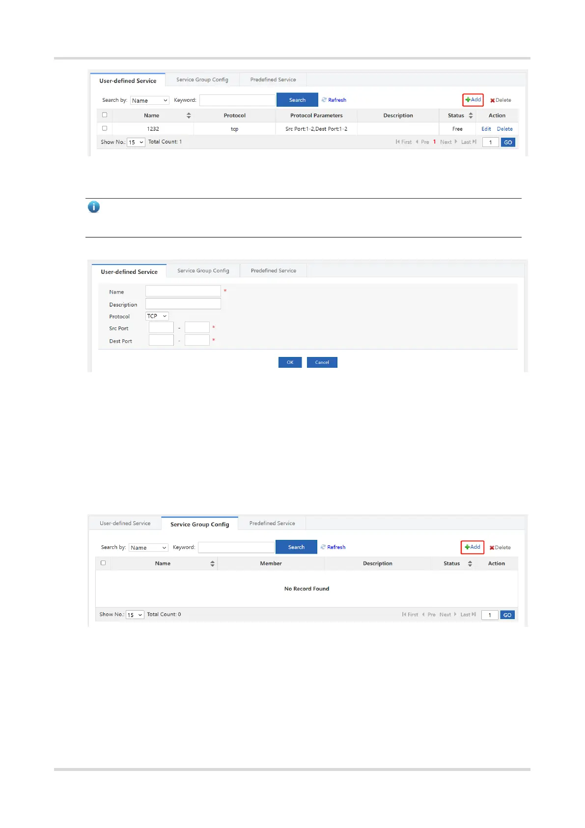(1) Choose Firewall > Service Resource > Service Group Config.