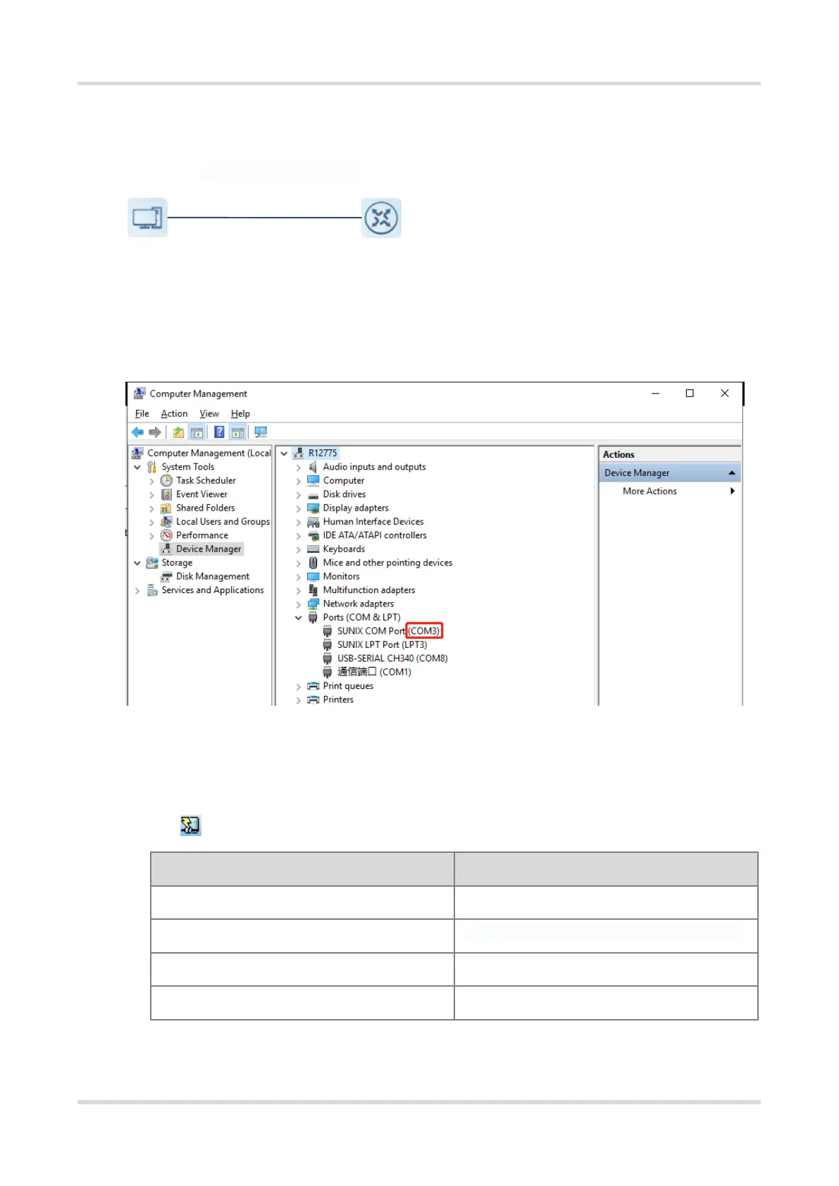 Right-click This PC > Manage > Device Manager to view "Ports (COM&LPT)".
