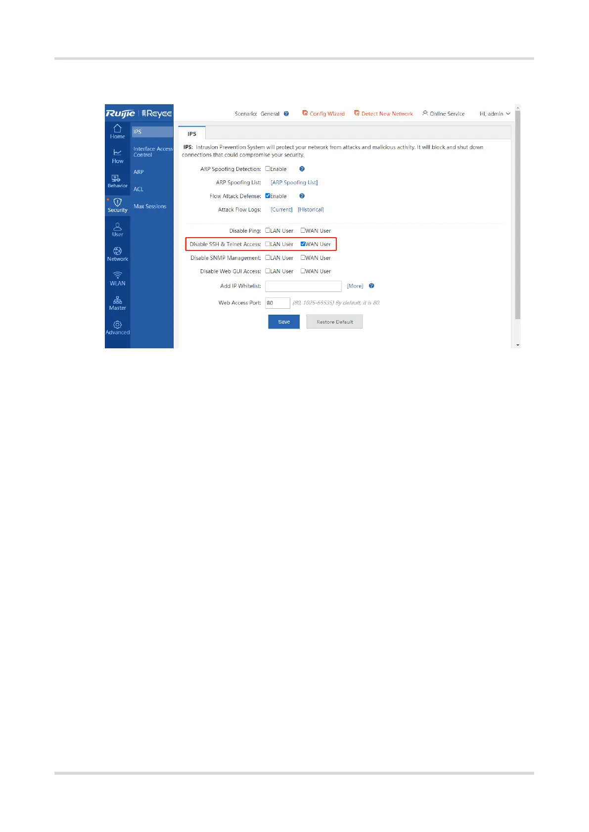 b Check Telnet and SSH access restrictions. To ensure security, WAN users are not allowed to log in to