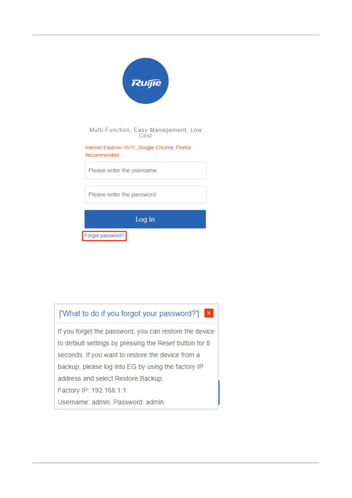 (3) Follow the prompts on the page to restore factory settings of the router. Then log in to the web management