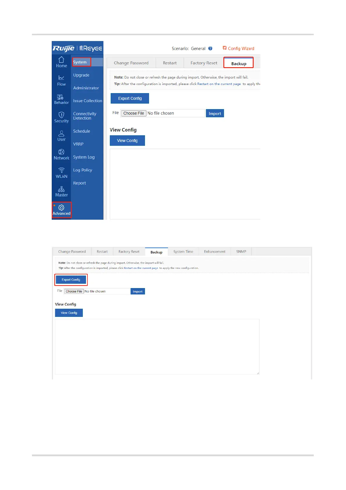 You can restore the system to the specified configuration state by importing the backup configuration files into