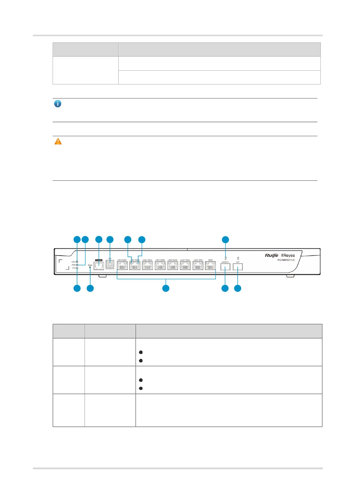 Table 1-10 Description of the Front Panel of Ruijie RG-NBR6215-E Router